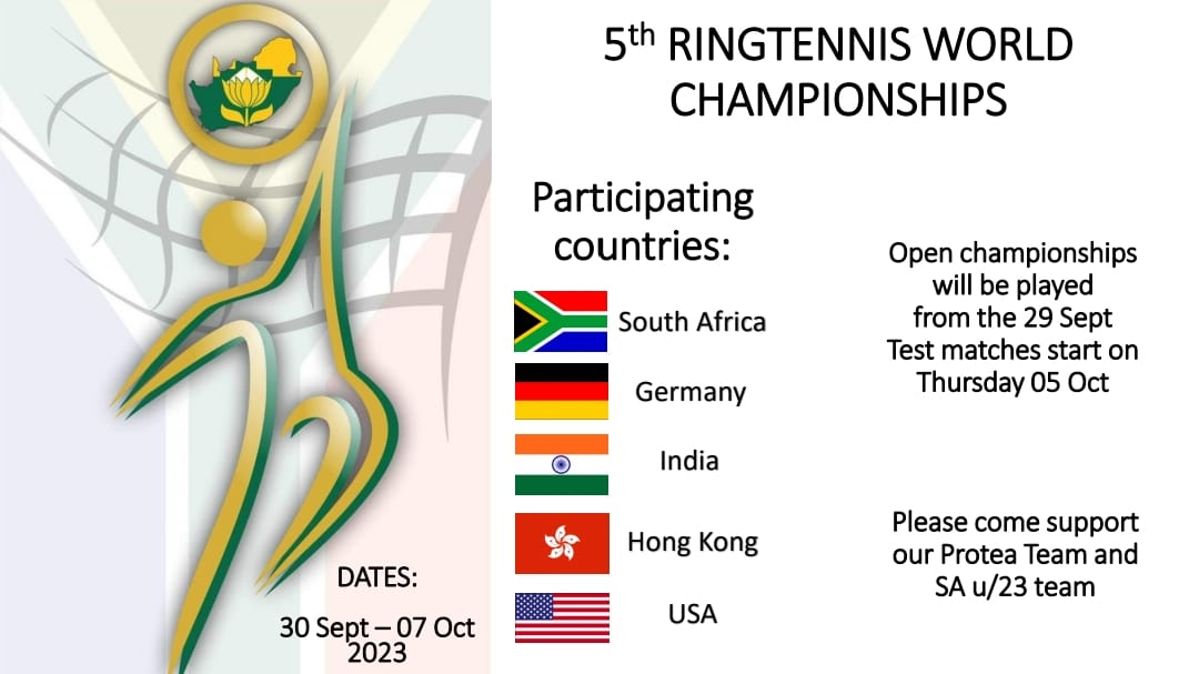 With this, organizer South Africa can be satisfied after only 8 months of preparation: Five nations from four continents are participating from September 30 to October 7 in Pretoria. Besides the three WTF founding members host South Africa, world champion Germany and India, Hong Kong and USA have entered some individual competitors. World Cup debutant Hong Kong is sending four players, making it the 10th nation to actively compete in world title matches. Admission of the new Ringtennis friends from the Chinese Special Administrative Region to the World Tenniquoits Federation previously is considered a formality. The USA will again be represented by a singles competitor who already wore 'Stars and Stripes' at the last World Championships. Painfully missed will be the Basque Country, Belarus and Canada, who will not be able to participate after the postponement of the 2023 World Championships. Since the Ringo-country Poland will not make the long journey to the Cape, as it did in 2014, the competition organizers canceled the Ringo competition on October 5. South Africa Ringtennis brought new momentum to the event with their idea of U23 Tri-Nations Championships in the individual disciplines and team competition. The large Indian and German delegations will ensure a record number of participants for World Championships in Ringtennis.
